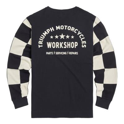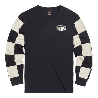 A crew neck long sleeve top constructed in 100% cotton waffle 230gsm. Featuring Black body, neck and cuffs with chequerboard long sleeves, stylised ...