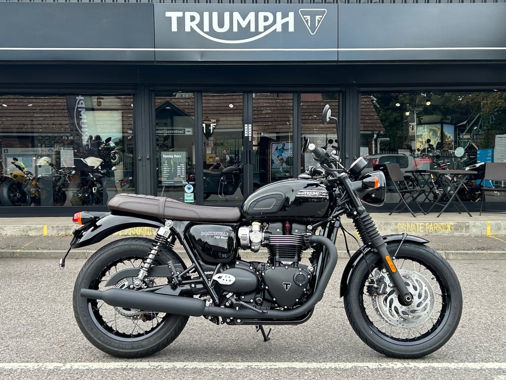 CHOOSE BETWEEN A FREE STYLE PACK OR TOURING PACK WHEN YOU BUY THIS NEW BONNEVILLE T120 BLACK. STYLE PACK INCLUDES BLACK RIBBED BENCH SEAT AND FOX REAR SUSPENSION UNITS. TOURING PACK INCLUDES TOURING SCREEN, KING AND QUEEN SEAT, BEELINE AND CENTRE STAND. NEW TRIUMPH BONNEVILLE T120 BLACK IN JET BLACK. DELIVERY MILES ONLY. NEW UNREGISTERED. SERVICE AND HANDBOOKS. FULL SET OF KEYS. NEW CONDITION. COMES WITH 2 YEAR TRIUMPH WARRANTY EXTENDABLE TO 3 OR 4 YEARS. FINANCE AVAILABLE SUBJECT TO STATUS. CALL SALES ON 02086570121 TO RESERVE. DELIVERY FROM £199. SALE PRICE IS SUBJECT TO AN ADDITIONAL £100 ADMIN FEE.