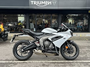 Snowdonia White/Sapphire Black Metallic,660 cc,Manual 6 Speed,2025 25 Reg,420 miles,Full Dealership History,ULEZ Compliant, Tubeless Tyres, Shift Assist, Seat Height 810 mm, Rider Modes, Optimised Cornering Traction Control, Optimised Cornering ABS, Optimate Adapter , Multi-function instruments with colour TFT screen, Max Power 95PS at 11,250 rpm, Factory Fitted Immobiliser, Delivery From Only £199, Datatag Security Marking, Can be fitted with a 35KW restrictor kit enabling the motorcycle to be ridden with an A2 licence, Call Triumph Insurance on 0800 085 6268 for a Quote, Additional £100 Admin Fee Applies, Add Diamondbrite Ceramic Coating for £299, Add 2 Year Factory Warranty Extension for £400, Add 1 Year Factory Warranty Extension for £250, 6 speed, 'Sport' riding mode,12 Months Warranty,£6,495.00.