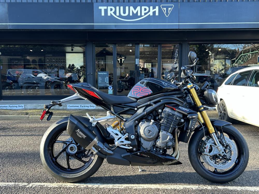 Jet Black , 1,160 cc , Service Interval 10,000 miles (16,000km)/12 months (whichever comes first), Reserve yours with a fully refundable £250 reservation fee. T&C's apply., Optimised Cornering Traction Control, Optimised Cornering ABS, Ohlins SmartEC3 Suspension with OBTi Tuning Interface, New Seat Cowl Design, New Lighter Wheels, My Triumph Connectvity Module, Marzocchi Steering Damper, Lithium ion battery, Keyless Ignition, IMU, Full-TFT Colour Display, Front Wheel Lift Control, Free Akrapovic Silencer., Factory Fitted Immobiliser, Engine Braking Control, Datatag Security Marking, Cruise Control, Call Triumph Insurance on 0800 085 6268 for a Quote, Brembo Stylema calipers, Brake Slide Assist, Belly Pan, Bar End Mirrors, Akrapovic Accessory Silencer Available, Add Diamondbrite Ceramic Coating for £299, Add 2 Year Factory Warranty Extension for £400, Add 1 Year Factory Warranty Extension for £250, 5.9% APR Finance Available Subject to Status, 183 PS / 180.5 bhp (134.6 kW) @ 10,750 rpm , 24 Months Warranty , Was £18,935.00 Now £17,495.00 Save £1,440.00 .