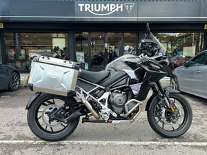 Sapphire Black Metallic,1,160 cc,Manual 6 Speed,USB Charging Socket, ULEZ Compliant, TPMS, Showa Semi Active Electronic Suspension, Shift Assist, Service Interval 10,000 miles (16,000km)/12 months (whichever comes first), Self-Cancelling Indicators, Rider Modes, Optimised Cornering Traction Control, Optimised Cornering ABS, My Triumph Connectvity Module, Lower Engine Bars, LED Auxiliary Lights, IMU, Hill Hold, Heated Seats, Heated Grips, Factory Fitted Immobiliser, Expedition Top Box, Silver, Expedition Panniers, Silver, Datatag Security Marking, Cruise Control, Call Triumph Insurance on 0800 085 6268 for a Quote, Brembo Stylema calipers, Blind Spot Radar, Adjustable Screen, Adjustable Riders Seat Height: 850 - 870 mm , Add Diamondbrite Ceramic Coating for £299, Add 1 Year Factory Warranty Extension for £250, 30 Litre Fuel Tank, 3 Year Factory Warranty,36 Months Warranty,Was £18,945.00 Now £17,745.00 Save £1,200.00.